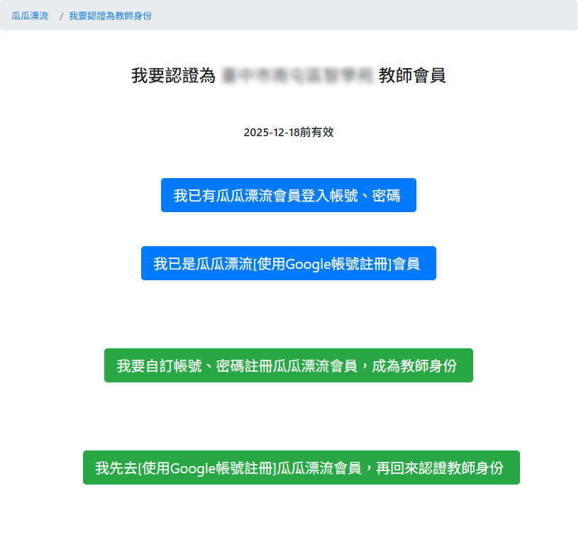 貴校教師只要按照需求自行註冊,就會自動加入為貴校教師(含級任導師設定),但此網址有效期限為自複製日起一個月內有效喔。