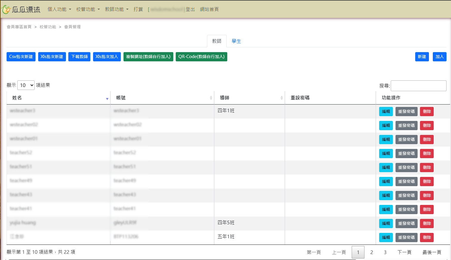 校管人員擁有最大的權限,只要是校管人員新增的教師會員,都不必經過系統的教師會員身份認證程序: